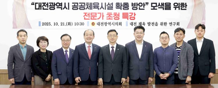 [무한뉴스=정민정 기자] 대전시의회 의원연구회인 ‘대전 체육 발전을 위한 연구회’는 21일 시의회 3층 공감실에서 '대전광역시 공공체육시설 확충 방안'을 주제로 전문가 초청 특강을 개최했다.
