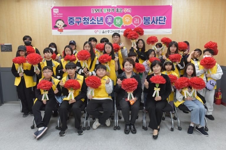 [무한뉴스=최진수 기자] (사)울산중구자원봉사센터가 4월 12일 오전 10시 중구자원봉사센터 교육장에서 청소년 꽃봉우리 봉사단원을 대상으로 자원봉사 기본 교육 및 카네이션 만들기 봉사활동 프로그램을 진행했다.