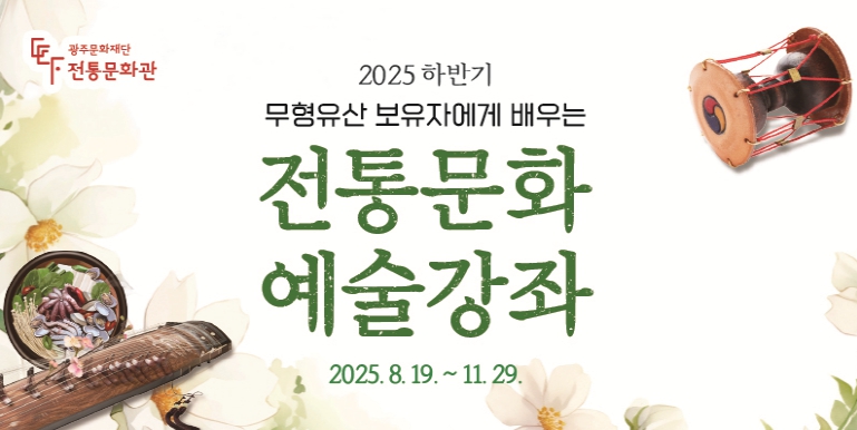 하반기 강좌는 8월 19일부터 11월 29일까지 매주 1회씩 총 15주간 진행되며, 자세한 내용은 전통문화관 누리집 또는 광주문화예술통합플랫폼 디어마이광주에서 확인할 수 있다.
