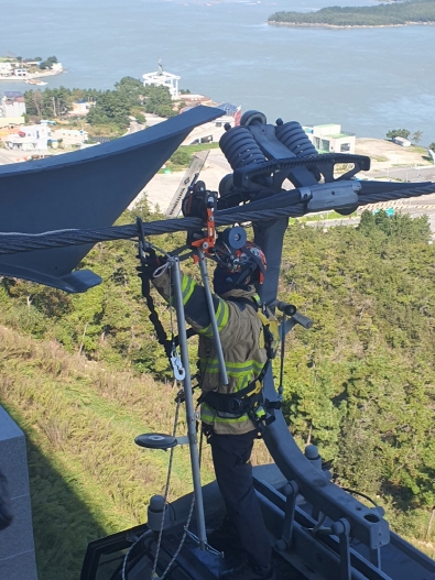 [무한뉴스=정민정 기자] 진도소방서는 10월 20일 명량해상케이블카 진도스테이션에서 삭도시설 민관합동 구조훈련을 실시했다. 이번 훈련은 전국적으로 노후화가 진행 중인 관광용 삭도설비와 최근 증가하는 설치 현황에 대응하기 위해 마련됐다.