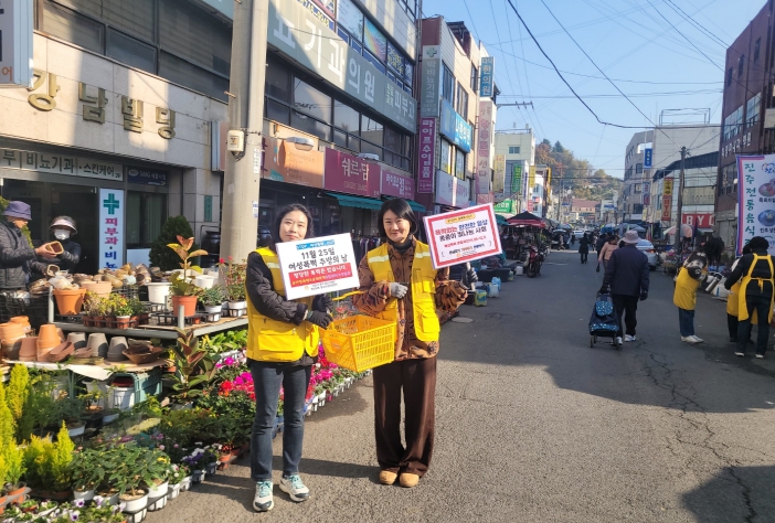 이날 ‘여성폭력추방의날’ 피켓을 들고 가두행진을 하며 홍보물을 배부했으며, 지역 상인들과 방문객들의 적극적인 참여로 ‘여성폭력추방주간’을 알리는 계기가 됐다. 여성폭력추방주간은 11월 25일~12월 1일까지다.