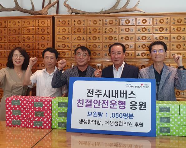 [무한뉴스=정민정 기자] 전주시는 완산구 중화산동에 위치한 생생한약방이 무더운 여름철 시내버스 운전원들의 건강과 안전 운행을 위해 총 1050명분의 기력 회복용 한약 ‘보원탕’ 후원했다고 22일 밝혔다.