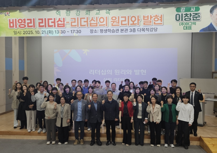 [무한뉴스=정민정 기자] 남원시는 10월 21일 오후 1시 30분부터 평생학습관 3층 다목적 강당에서 민간사회복지 종사자 70여명이 참석한 가운데 '비영리 리더십 – 리더십의 원리와 발현'을 주제로 2025년 민간사회복지사 역량강화교육 5회차 마지막 교육을 성황리에 마쳤다.