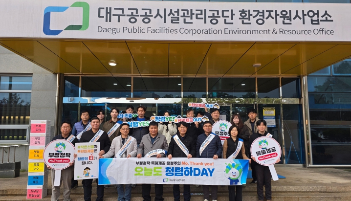 [무한뉴스=최진수 기자] 대구공공시설관리공단 환경자원사업소는 11월 25일, 청렴문화 확산과 지역사회 청렴도 향상을 위해 ‘청렴하DAY’ 협동캠페인을 진행했다.