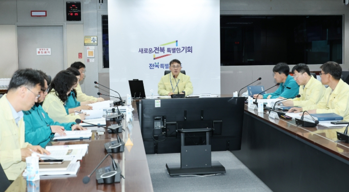 전북특별자치도는 7일 오전 도청 7층 재난상황실에서 ‘폭염·가뭄 대응 추진상황 시군 점검회의’를 열고, 도내 14개 시군 농정 및 축산부서 관계자들과 함께 여름철 재난 대응체계를 점검했다.