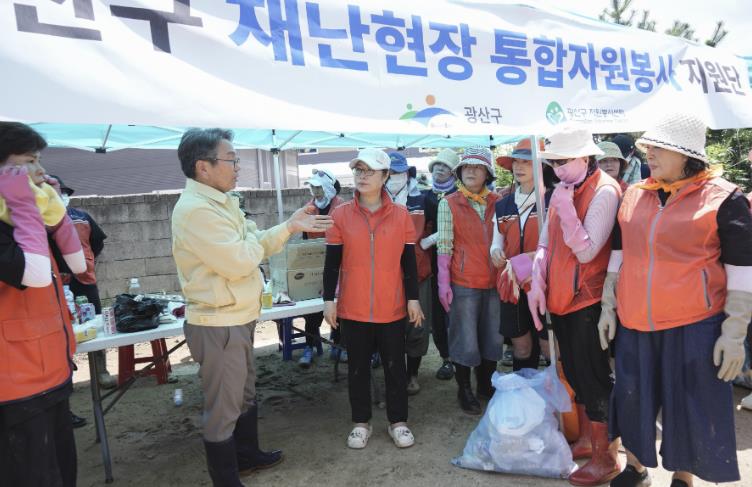광주시 자원봉사자, 군 장병 등은 집중호우 초기인 17일부터 20일까지는 약 630명이 휴일까지 반납한 채 복구에 힘을 보탰다.