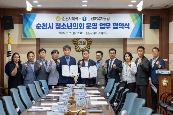 [무한뉴스=정민정 기자] 순천시의회는 순천교육지원청과 7일 “2025년 순천시 청소년의회 운영을 위한 업무협약”을 체결했다고 밝혔다.
