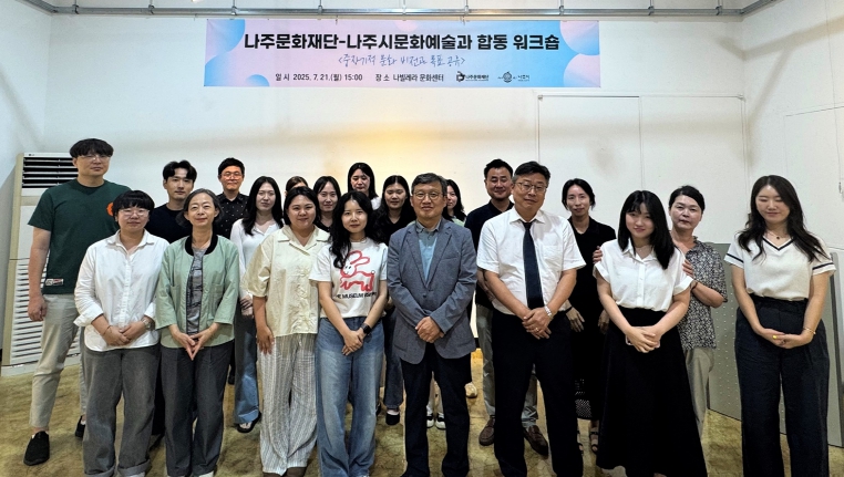 나주문화재단(이사장 윤병태)은 지난 21일 나주시 문화예술과와 함께 2025~2026년 문화예술 사업계획 구상을 위한 합동 워크숍을 개최했다고 22일 밝혔다.