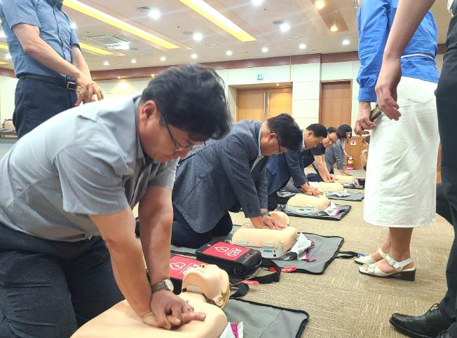 장성소방서 하희영 소방교가 교육을 맡아 △심정지환자 발생 시 대처요령 △심폐소생술 이론 및 실습 △자동심장충격기 사용법 등을 지도했다.