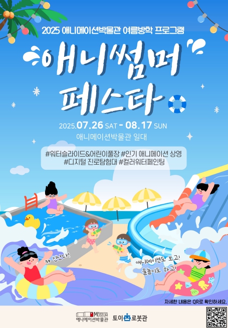 애니메이션박물관장은 “올여름 박물관은 단순한 전시공간을 넘어, 가족이 함께 즐기고 배울 수 있는 체험형 복합문화공간으로 운영될 예정”이라며 “많은 분들이 시원하고 유익한 추억을 만들고 가시길 바란다.”고 전했다.
