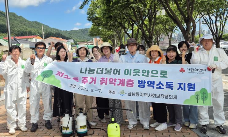 몸이 불편해 잡풀과 쓰레기 등이 방치된 주택에서 거주하는 노인가구를 대상으로 추진하는 방역소독 사업은 장마와 무더위에 기승을 부리는 해충들로부터 건강을 지킬 수 있도록 금남동지사협이 매년 추진하는 대표 사업으로 주민들로부터 큰 호응을 얻고 있는 사업이다.