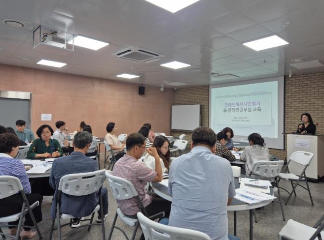 이번 교육은 읍면 단위에서 수행하고 있는 장애인복지사업의 평가 역량을 높이고, 사업 추진의 체계성과 실효성을 강화하기 위해 마련됐다.