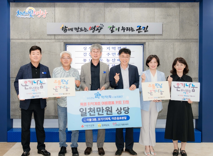 [무한뉴스=정민정 기자] 영광군은 지난 30일 전라남도 자원봉사센터(센터장 김상길)로부터 어르신과 장애인 등 폭염 취약계층을 위해 1천만 원 상당의 여름나기 키트 100세트를 기탁받았다.
