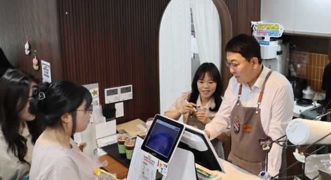 | ▲ 우광일 광양상공회의소 회장, ‘드림카페 커뮤니티센터점’ 일일점장 되다 |