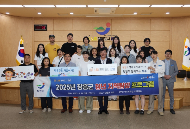 [무한뉴스=정민정 기자] 장흥군이 지난 24~25일 1박2일 간 서울시 넥스트로컬 청년 3팀 5명과 타시군 청년 15명을 대상으로 지역탐방 프로그램을 운영했다고 밝혔다.