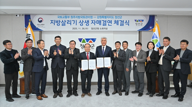 [무한뉴스=정민정 기자] 정선군은 11월 26일 정선군청에서 국토교통부 원주지방국토관리청(청장 이동민)과 ‘지방살리기 상생 자매결연 업무협약’을 체결했다고 밝혔다.
