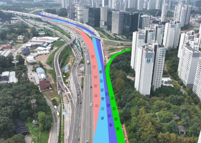 이번 임시 개통과 함께 지방도309호선 하행 노선(봉담 방향) 중 과천래미안슈르 인근 과천고가교 구간은 전면 차단된다. 해당 도로를 이용하던 차량은 국도47호선 우회도로 안양 방향 도로를 경유해 과천봉담도시고속화도로로 재진입할 수 있다.