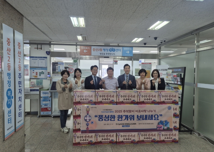 한유희 중산2동장은 “1년 중 가장 풍성하고 여유롭다는 민족 대명절 한가위를 앞두고, 가족들의 명절 음식을 장만하는 어머니 사랑의 마음으로 준비한 추석 선물 세트를 잘 전달하겠다”며“어렵고 소외된 이웃들의 가정마다 웃음과 기쁨이 어느 때보다 풍족하길 바란다”고 전했다.