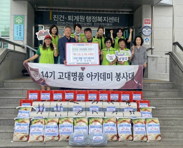 한편, 남양주 고대 명품 14기 봉사대는 고대 명품 아카데미 14기 수료생들이 나눔의 뜻을 모아 결성한 봉사단체로, 매년 명절마다 지역의 어려운 이웃을 돕는 활동을 이어오며 지역사회 나눔 실천에 앞장서고 있다.