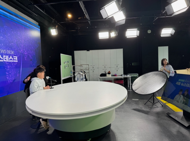 | ▲ 세종진로교육원에서 특수교육 대상학생을 위한 맞춤형 진로체험 프로그램이 진행되고 있다. (뉴스 진행자 되어보기 체험) |