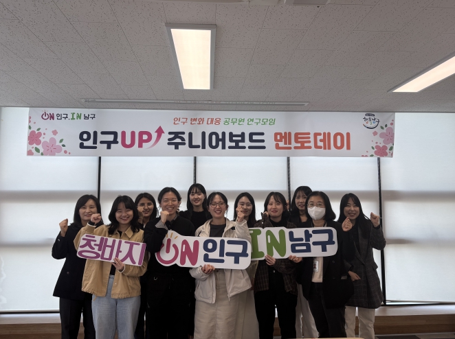 또한, 지난 2월 26일에는 남구청 3층 회의실에서 ‘인구UP 주니어보드’ 발대식을 열고, 젊은 공무원들의 열정적인 참여 속에 공식적인 활동을 시작했다.