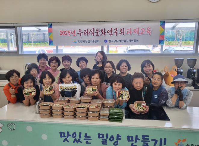 우리식문화연구회는 한국생활개선밀양시연합회 소속 동아리로 음식에 관심 있는 회원이 모여 연간 주제를 정해 식문화 관련 교육을 추진하는 등 재능 기부 활동을 해오고 있다.