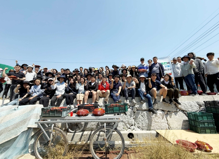 이날 봉사활동에는 교육생 88명과 인재개발원 인솔자 4명 등 90여 명이 참여해, 수동면 시설채소작목반 최삼호 반장과 인근 농가의 딸기 하우스 10동에서 잼용 딸기 수확 작업을 도왔다.