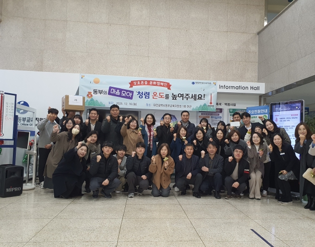 [무한뉴스=정민정 기자] 대전동부교육지원청은 12월 16일 전 직원을 대상으로 ‘동부의 마음 모아 청렴 온도를 올려주세요!’행사를 실시했다.