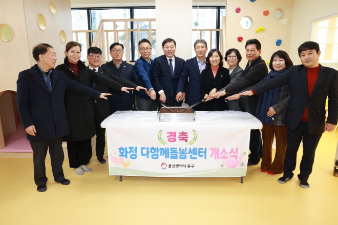 [무한뉴스=최진수 기자] 울산 동구는 12월 24일 오전 10시 30분 화진4가길 20, 3층에서 김종훈 동구청장과 지역 주민 100여 명이 참석한 가운데 ‘화정다함께돌봄센터 개소식’을 개최했다.