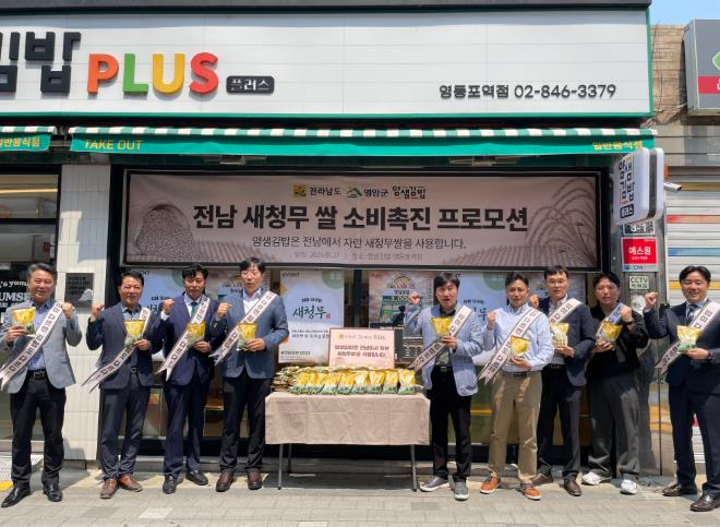[무한뉴스=정민정 기자] 전라남도는 27일 프렌차이즈 ‘얌샘김밥’ 영등포역점에서 전남 새청무쌀 소비촉진 프로모션 이벤트를 개최했다.