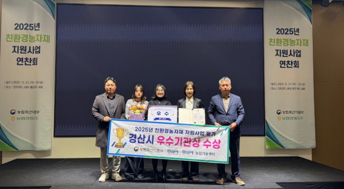 [무한뉴스=최진수 기자] 경산시는 27일 세종시 코트야드 메리어트에서 열린 농림축산식품부 주관의 2025년 친환경농자재 지원사업 연찬회에서 '친환경농자재 지원사업 평가' 우수 기관상을 수상했다고 밝혔다.
