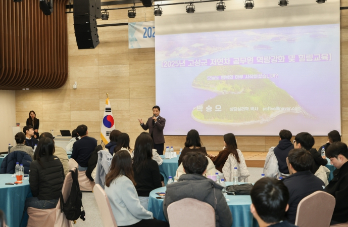 [무한뉴스=최진수 기자] 고성군은 12월 15일 고성유스호스텔 컨벤션홀에서 최근 5년간 임용된 저연차 공무원 60여 명을 대상으로 ‘저연차 공무원 역량 강화 및 힐링 교육’을 실시했다.