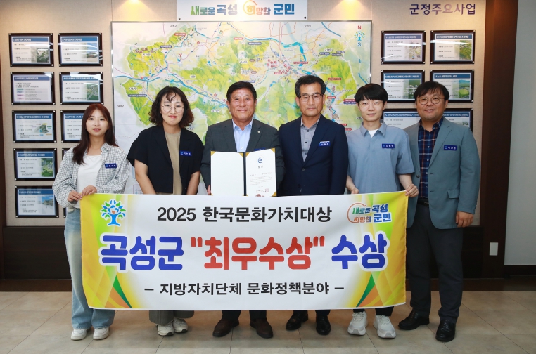 [무한뉴스=정민정 기자] 곡성군이 ‘2025 한국가치문화대상’에서 2년 연속 최우수상을 받으며 지역 문화정책의 우수성을 다시 한번 인정받았다.