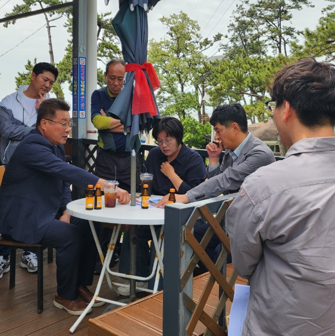점검 결과, 가마미해수욕장 입구 도로의 노면 표기가 잘못되어 차량 진출입및 버스 정차 시 교통이 혼잡했다.