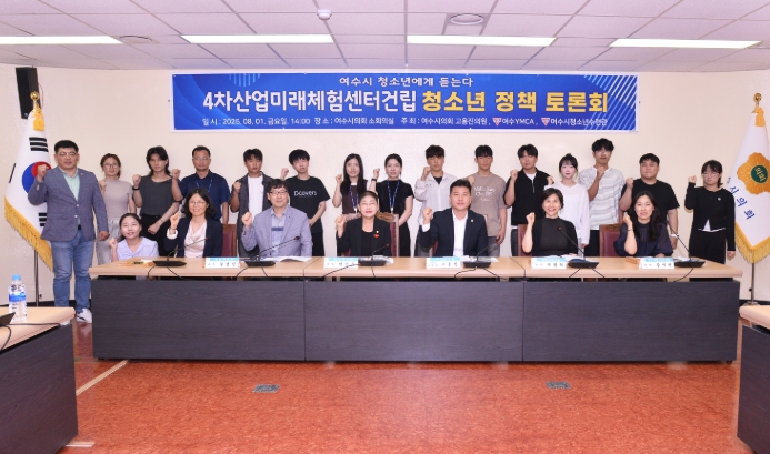 [무한뉴스=정민정 기자] 여수시의회는 청소년의 눈높이에서 여수시 교육환경을 진단하고 디지털 인재 양성의 방향성을 찾기 위해 8월 1일 여수시의회 소회의실에서 “4차산업미래체험센터 건립을 위한 청소년 정책 토론회”를 개최했다.