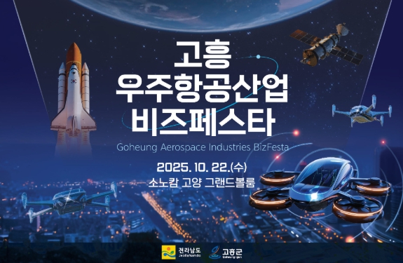[무한뉴스=정민정 기자] 고흥군은 대한민국 우주항공산업의 중심지로서 미래 전략산업을 선도하기 위해 오는 10월 22일 경기도 고양시 소노캄 호텔에서 ‘2025 고흥 우주항공산업 비즈 페스타’를 개최한다고 밝혔다.