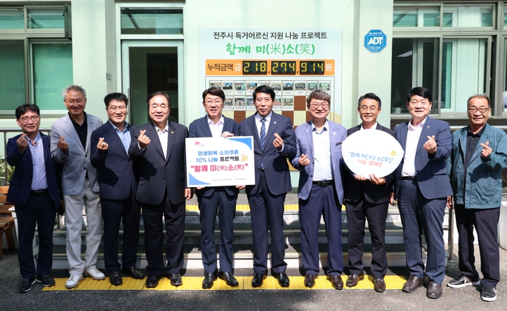 최재훈 전주시노인복지관연합회장은 “함께미소 프로젝트는 단순한 기부가 아니라 전주시민의 연대와 관심, 존중이 담긴 큰 걸음”이라며 “전주시의 따뜻한 정책인 ‘함께복지’ 사업의 활성화에 힘을 보태게 돼 기쁘고, 앞으로도 우리 지역의 소외된 어르신과 함께 잘사는 전주를 만들기 위해 함께 하겠다”고 밝혔다.