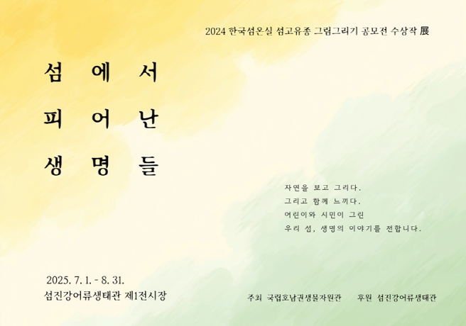 이번 전시는 2024년 국립호남권생물자원관이 주최한 ‘한국섬온실 섬고유종 그림 그리기 공모전’의 수상작 22점을 중심으로 구성됐으며, 섬에서 서식하는 생물을 주제로 한 다채로운 창작 작품들을 통해 생물다양성의 가치를 전하고자 기획됐다.