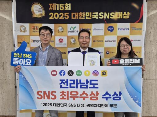 [무한뉴스=정민정 기자] 전라남도는 국내 최고 권위의 SNS 시상식인 ‘2025 대한민국 SNS 대상(KOREA SNS AWARD)’에서 광역자치단체 부문 최우수상을 수상했다고 밝혔다.