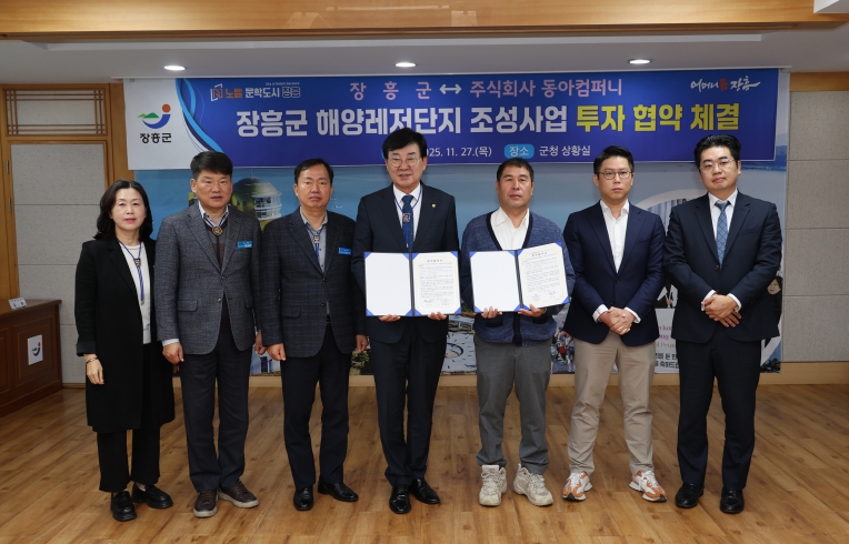 [무한뉴스=정민정 기자] 장흥군은 27일 (주)동아컴퍼니와 150억원 규모의 해양레저단지 조성사업 투자협약을 체결하고, 지역 해양관광산업의 새로운 도약 기반을 마련했다.