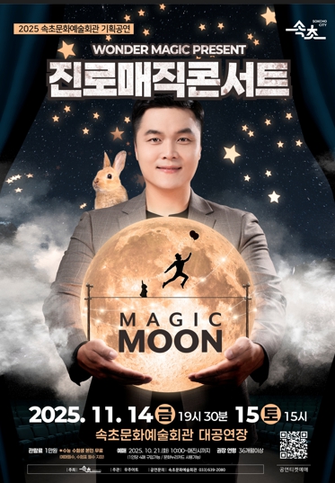 [무한뉴스=정민정 기자] 속초시는 오는 11월 14일 금요일과 11월 15일 토요일 이틀간 속초문화예술회관에서 최형배 마술사의 진로매직콘서트 MAGIC MOON을 선보인다.