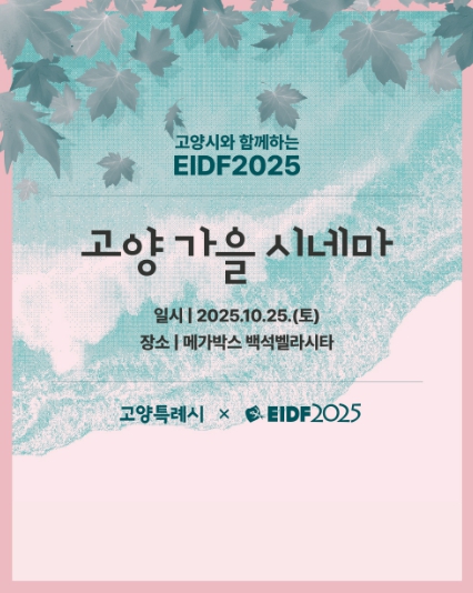 ‘고양 가을 시네마’의 사전 예매 신청은 EIDF 누리집을 통해 할 수 있으며, 상영회와 관련한 자세한 내용은 EIDF 누리집과 EIDF 공식 SNS 채널을 통해 확인할 수 있다.