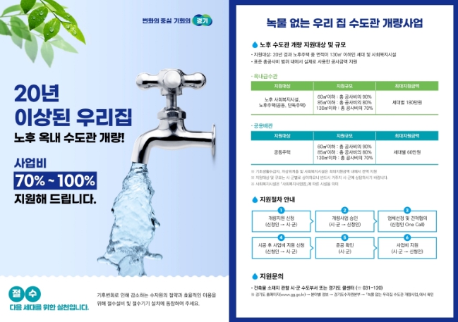 이번 사업은 노후된 옥내급수관을 교체해 녹물 발생을 예방하고, 쾌적한 생활용수 환경을 제공하기 위한 것으로, 준공 후 20년이 지난 130㎡ 이하의 노후주택이 대상이다. 사업을 통해 시민들은 녹물로 인한 불편을 줄이고 보다 안정적인 수돗물을 이용할 수 있게 된다.