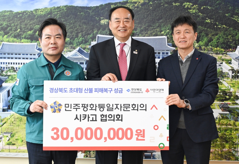 [무한뉴스=최진수 기자] 민주평화통일자문회의 시카고협의회가 15일 경북도청을 방문해 경북 초대형 산불 피해 극복을 위해 모금한 성금 3,000만원을 전달했다.