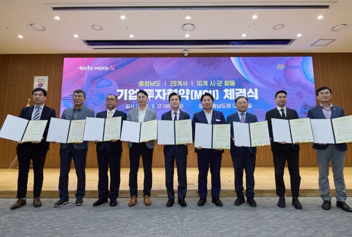 이번 투자협약은 17일 충남도청 대회의실에서 열린 ‘충청남도-시군-기업 합동 투자협약식’을 통해 진행됐다. 협약식에는 충남도내 10개 시군과 29개 기업이 참여해 합동으로 협약을 맺었다.