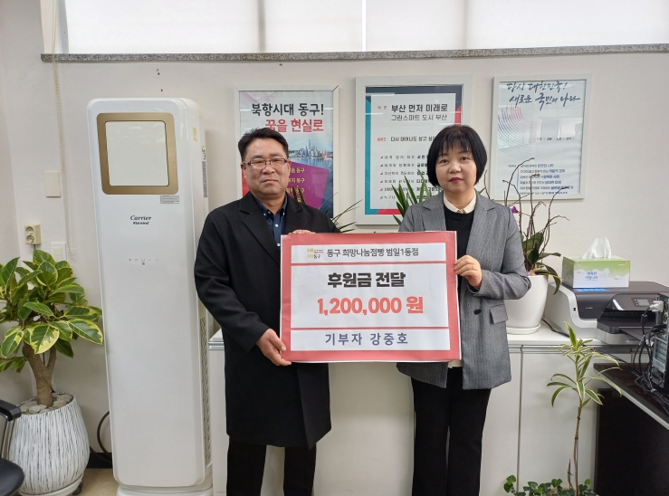 [무한뉴스=최진수 기자] 지난 14일 부산 동구 희망나눔점빵 범일1동점에 강중호 씨의 따뜻한 기부 소식이 전해졌다. 강중호 씨는 2025년 한 해 동안 매월 10만 원씩, 총 120만 원의 후원을 약속하며 지역사회를 위한 나눔에 동참했다.