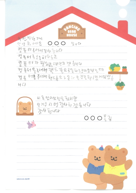 컴퓨터를 전달받은 다문화가정 자녀는 편지를 통해 “천안지역세무사회 후원자 여러분께 깊이 감사드린다”며 고마운 마음을 전했다.