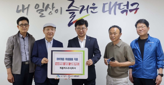 [무한뉴스=정민정 기자] 대전 대덕구는 21일 계룡버스(주)(대표이사 김창중)로부터 저소득 주민을 위한 100만원 상당의 교통카드 70매를 기탁받았다고 밝혔다.