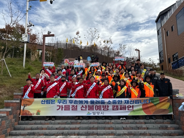 [무한뉴스=최진수 기자] 경남 밀양시는 가을철 산불조심기간을 맞아 시민의 산불예방 의식을 높이기 위해 12일 용두산 생태공원 일대에서 산불예방 홍보 캠페인을 전개했다고 밝혔다.