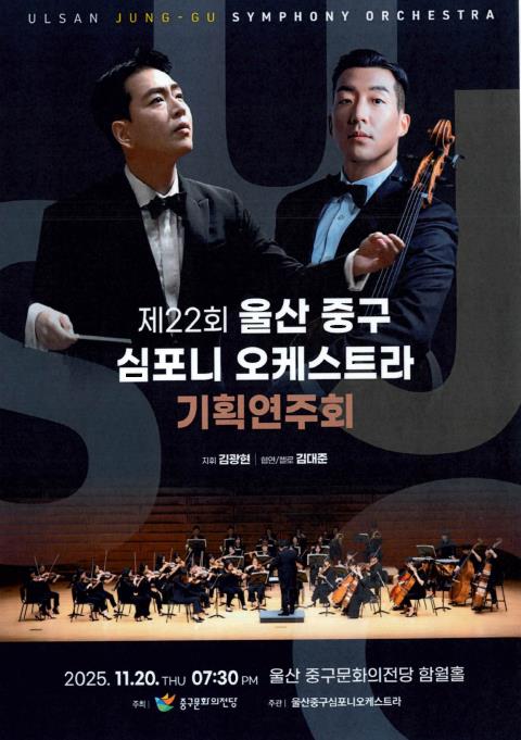 [무한뉴스=최진수 기자] 울산 중구심포니오케스트라가 오는 11월 20일 오후 7시 30분 중구문화의전당 함월홀에서 제22회 기획연주회를 개최한다.